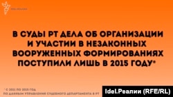 С 2011 по 2015 год в суды Татарстана поступило 20 уголовных дел по обвинению в организации экстремистского сообщества. Согласно статистике Управления судебного департамента в Татарстане, каждое третье из них было прекращено.