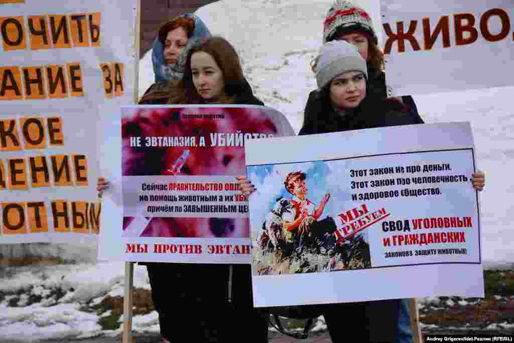 Зоозащитники собрались 26 марта в час дня у памятника Муллануру Вахитову. Предыдущая такая акция состоялась осенью, в ней участвовали десятки городов по всей стране. Поводом для пикетов послужила история живодерок в Хабаровке, замучивших насмерть кошек, собак и птиц. Зоозащитники поставили вопрос об ужесточении наказания за жестокое обращение с животными и обеспечении защиты прав животных на законодательном уровне.