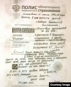"Министерство здравоохранения Самарской области считает необходимым проинформировать, что отказавшись публично от полиса обязательного медицинского страхования, оставаясь гражданином Российской Федерации и жителем Самарской области в соответствии с действующим законодательством (федеральными законами № 323-ФЗ "Об основах охраны здоровья граждан в Российской Федерации", № 326-ФЗ "Об обязательном медицинском страховании в Российской Федерации"), Логинов В.А. остается застрахованным и не утрачивает право на получение всех видов медицинской помощи в соответствии с Территориальной программой государственных гарантий бесплатного оказания населению Самарской области медицинской помощи, утвержденной постановлением Правительства Самарской области от 24.12.2015 № 880.