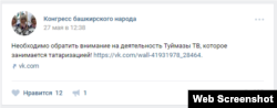 Еще одно забавное наблюдение. Не найдя более убедительных доказательств якобы "татаризации" Башкортостана, администраторы группы "Конгресса башкирского народа" в соцсети "ВКонтакте" разместили на своей стене вот такое объявление: "Необходимо обратить внимание на деятельность "Туймазы ТВ", которое занимается татаризацией!".
