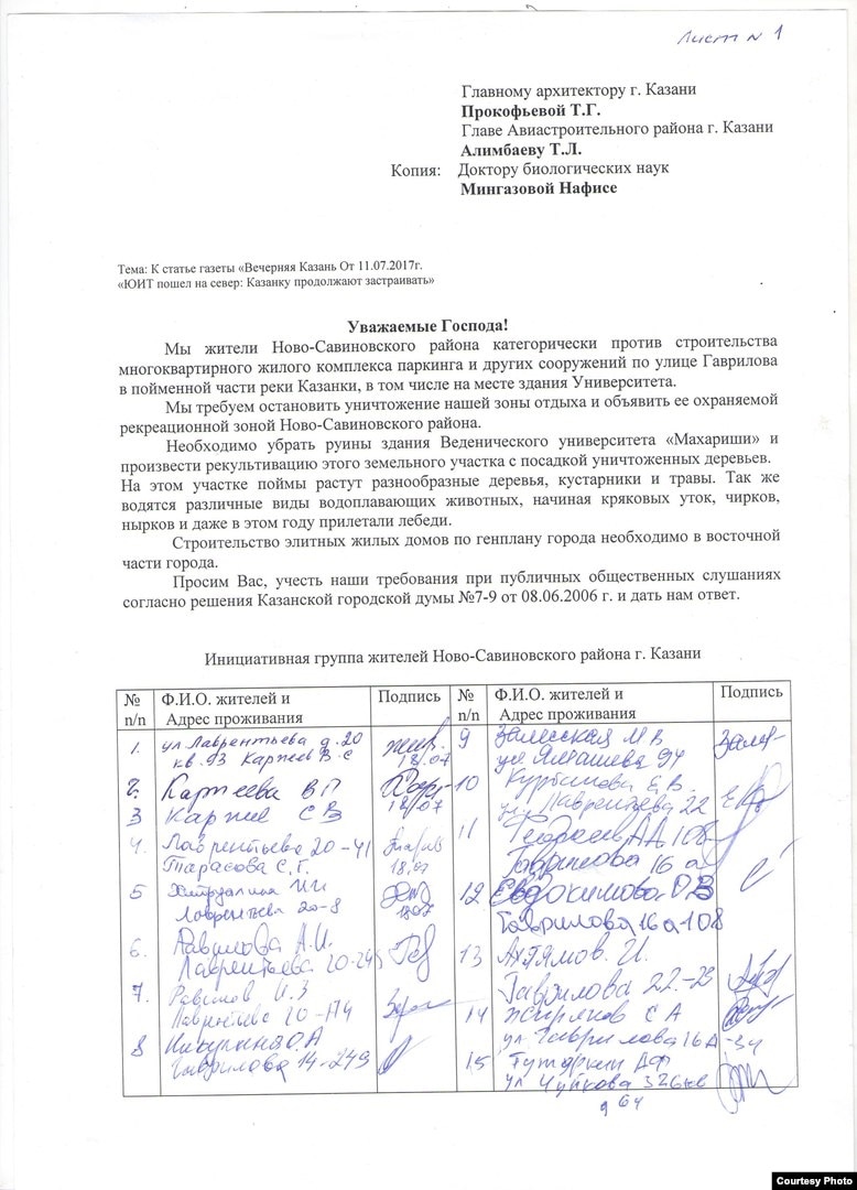 Как пояснил "Idel.Реалии" один из участников инициативной группы Виктор Карпеев, сбор подписей под обращениями к властям продолжается и "если от исполкома не будет вразумительного ответа, они продолжат писать во все инстанции".