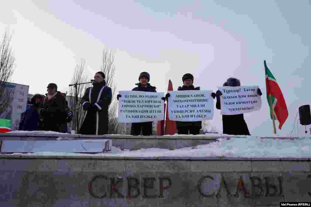 Сегодня, 18 февраля, в Казани вышли на митинг в защиту татарского языка. В акции участвовали около 150 человек. Она состоялась в Сквере Славы возле станции метро "Проспект Победы".
