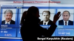 Лидирует на выборах президента России Владимир Путин. За действующего главу государства отдали свои голосапочти 77 процентов избирателей (или более 55 миллионов человек). На втором месте кандидат от КПРФ Павел Грудининс 12 процентами, лидер ЛДПР Владимир Жириновский получил 5,7 процента голосов. За Ксению Собчак проголосовали около двух процентов избирателей, Григорию Явлинскому отдал свои голоса 1 процент россиян. Остальные трое кандидатов в президенты России (Борис Титов, Максим Сурайкин и Сергей Бабурин) не смогли преодолеть рубеж в один процент голосов.