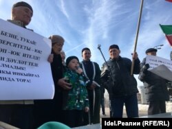 Зампред ВТОЦ Галишан Нуриахмет со сцены заявил, что организация просила местные власти провести сегодняшний митинг в центре города, но "они отправили нас в закуток". "Мы дожили до того, что запретили преподавание татарского языка в школах, детских садах. Идет дискриминация языка", — резюмировал Нуриахмет.