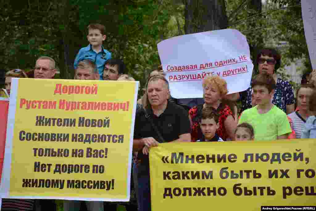 О том, что их дома объявлены вне закона, люди узнали всего месяц назад. Причем случайно. Власти Казани утверждают, что речь идёт о самостроях, однако многие из местных жителей, помимо плакатов, принесли на митинг полный набор документов, подтверждающих, что их дома построены законно. Характерно, что автотрасса, которую планируют пустить прямо через жилой сектор, не задевает ни один из коммерческих объектов. Подробнее о ситуации — здесь.