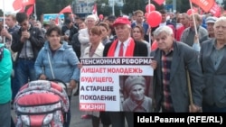 — Акции протеста против пенсионной реформы пока не сильно испугали власти всех уровней, — сказал выступивший в начале митинга первый секретарь рескома КПРФ Юнир Кутлугужин. — "Единая Россия" в Госдуме не отказалась от своего замысла, пообещав народу лишь несколько мелких подачек, типа отмены повышающих надбавок депутатам Госдумы членам Совета Федерации.