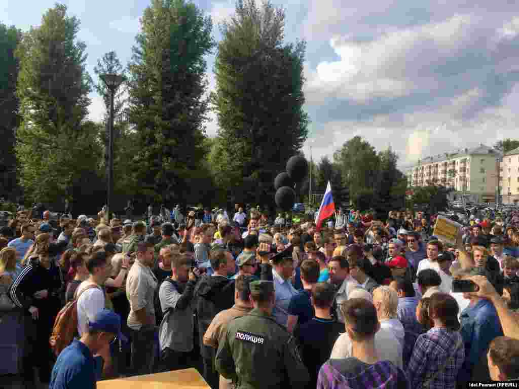 Акция прошла в парке Тинчурина. Исполком города не согласовал митинг, предложив организаторам провести его в посёлке Юдино. Сторонники Навального тем не менее призвали активистов прийти в парк Тинчурина. В акции приняли участие около 500 человек. Двое человек, державших плакат "Нет пенсионной афере", были задержаны. Митинг медленно превращается в шествие. Часть протестующих (около 200 человек) приняла решение идти в сторону центра Казани, пока неизвестно, куда именно.