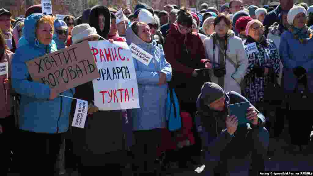 Свыше тысячи участников собралось 14 апреля в Елабуге, на старом майдане. Жители города предпочли антикоррупционный митинг официально спущенному "сверху" празднику встречи весны (последний был экстренно назначен на эту же дату администрацией Елабуги.