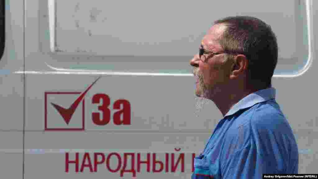 Неожиданностью для участников митинга, состоявшегося в Кировском районе у Красных ворот, стало отсутствие ставших уже привычными для казанских митингов ограждений с досмотром каждого входящего на территорию, отведенную под митинг, сотрудниками полиции. Да и самих полицейских были непривычно мало. Фотокор "Idel.Реалии" насчитал всего пятерых блюстителей закона в форме и, кроме того, не заметил примелькавшихся уже лиц сотрудников центра "Э".