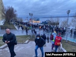 В Самаре акция идет уже 45 минут. Сейчас протестующие идут вдоль Волги. Наш корреспондент сообщает, что участников шествия становится все больше, из-за этого трудно оценить количество. При этом, силовиков тоже все больше.