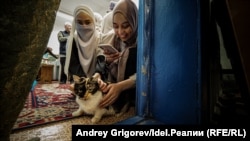 К вечерней молитве подтягиваются девушки в мусульманских платках. Они не прихожанки, просто гости, объясняет мне помощник имам-хатыйба мечети Айдар Сагиров. Их появление вносит небольшую сумятицу — ислам предписывает мужчинам и женщинам молиться отдельно. Девушкам выделяют комнату, где уже накрыт длинный стол для ифтара, дверной проём, ведущий в молельный зал, занавешивают плотным покрывалом...