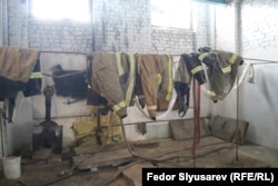 В углу одного из боксов свалены большие, сыроватые куски древесины — пожарные их распиливают и подкидывают в печку-буржуйку. Это, впрочем, не слишком помогает — температура в боксе немногим выше уличной. Из-за этого зимой воду из автоцистерн приходится сливать, а перед пожаром — заправлять вновь и терять минуты, которые могут стоить жизней. А пока на улице осень, вместе с дождем на улице вода льется через прохудившуюся крышу. В сильные ливни пол в помещении затапливает настолько, что внутрь приходится заходить в высоких резиновых сапогах.
