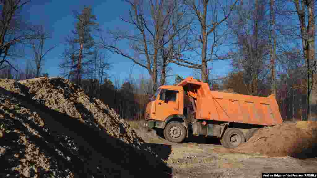 В особо охраняемой природной территории близ Дербышек работает тяжёлая техника. По официальной версии строители прокладывают прямо в лесу "пешеходную дорожку". Однако ширина "дорожки" такова, что на ней могут без труда разъехаться два автомобиля.