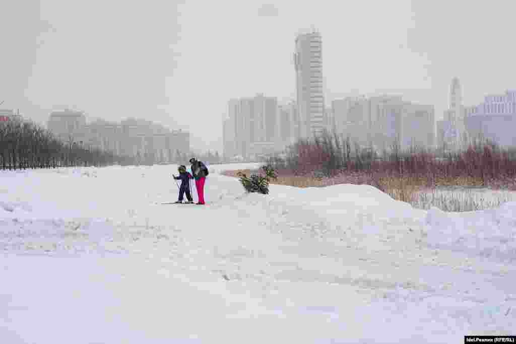 Эта намытая около десяти лет на Казанке назад территория, расположенная вдоль улицы Сибгата Хакима, давно уже превратилась для казанцев, живущих в многоэтажках поблизости, в своего рода парк дикой природы. Летом на песчаных барханах, которые сейчас скрыты снегом, загорают, осенью собирают облепиху с многочисленных кустов и кормят уток, плавающих в заливе, зимой катаются на лыжах и выгуливают собак.