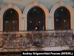 На балконе пустого здания ещё один человек в штатском с камерой в руках — очевидно, вместо снайпера. И это больше усиливает ощущение военного положения. Люди в штатском — "эшники", сотрудники центра по борьбе с экстремизмом. Они следят за теми, кто выходит с плакатами "Миру — мир" или "Нет войне" на центральную площадь своего города.