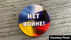 По поводу своего значка "Нет войне!" Макаренко заявил суду, что он выступает "за прекращение всех войн в мире".
