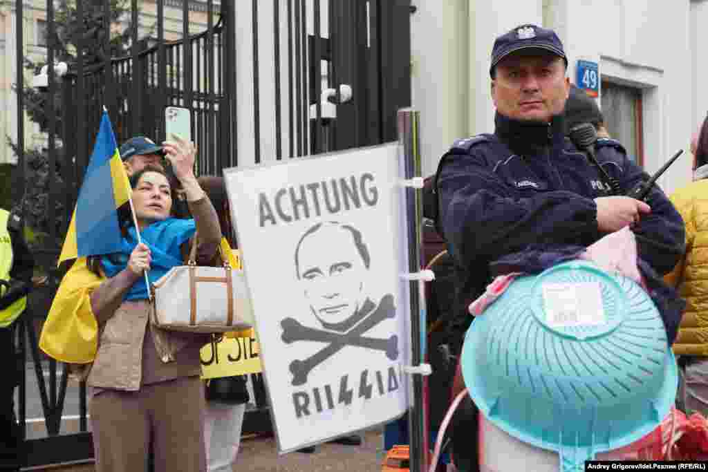Горы хлама выросли в среду вечером, 13 апреля, перед воротами посольства РФ в Варшаве. Протестующие, среди которых были украинцы, поляки, беларусы, татары и русские, принесли ко входу в посольство на улице Бельведерской бытовую технику, ковры, обувь, игрушки и нижнее белье.