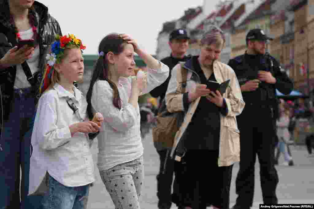 Кроме того, участники акции неоднократно в течение митинга просили украинцев морально поддержать россиян, которые, несмотря на репрессии, продолжают выходить в РФ на акции протеста против войны.
