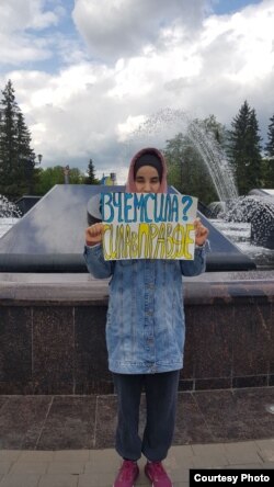 С самого начала [агрессии] я стала выходить на пикеты. Сперва мы выходили вместе с сестрой, которая полностью разделяет мою позицию. В частности, мы вышли 6 марта на площадь возле гостиницы "Башкортостан". Нас сразу же задержала полиция; тогда в Уфе были задержаны десятки людей. Нам дали по предупреждению и сказали, что если еще раз выйдем на пикет вместе, то нам инкриминируют групповое правонарушение. После этого мы решили, что на акции я буду выходить одна, буду действовать в рамках того, что еще дозволено этим тоталитарным режимом.