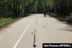 Асфальт за пять лет покрылся глубокими продольными трещинами. По инициативе журналиста "Idel.Реалии" и при поддержке проекта "Право на город" (проект новосибирского фонда "Так-Так-Так", признанного иностранным агентом) осенью 2021 года специалисты экспертного центра "Стройэкс" проверили состояние асфальтобетонного покрытия на тротуаре "Аллеи здоровья". Компания, проводившая экспертизу — из Волгограда: решение привлечь именно иногороднюю организацию обусловлено желанием обеспечить независимую оценку.