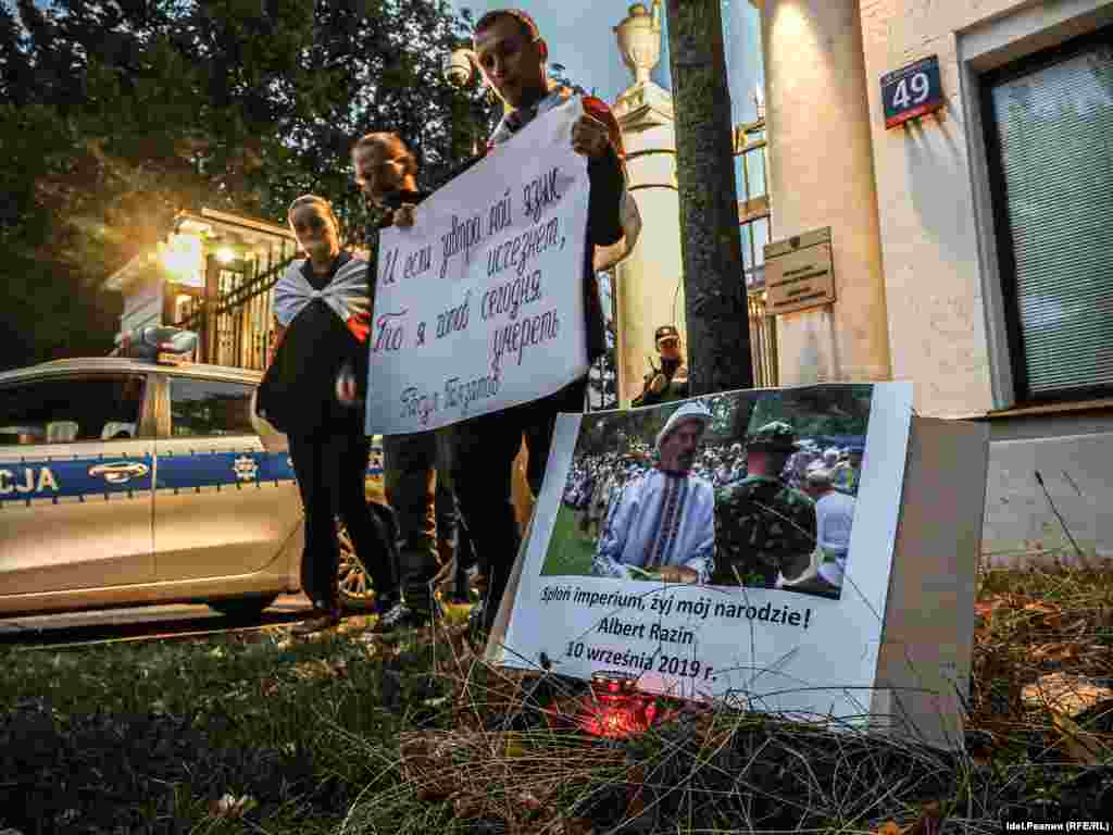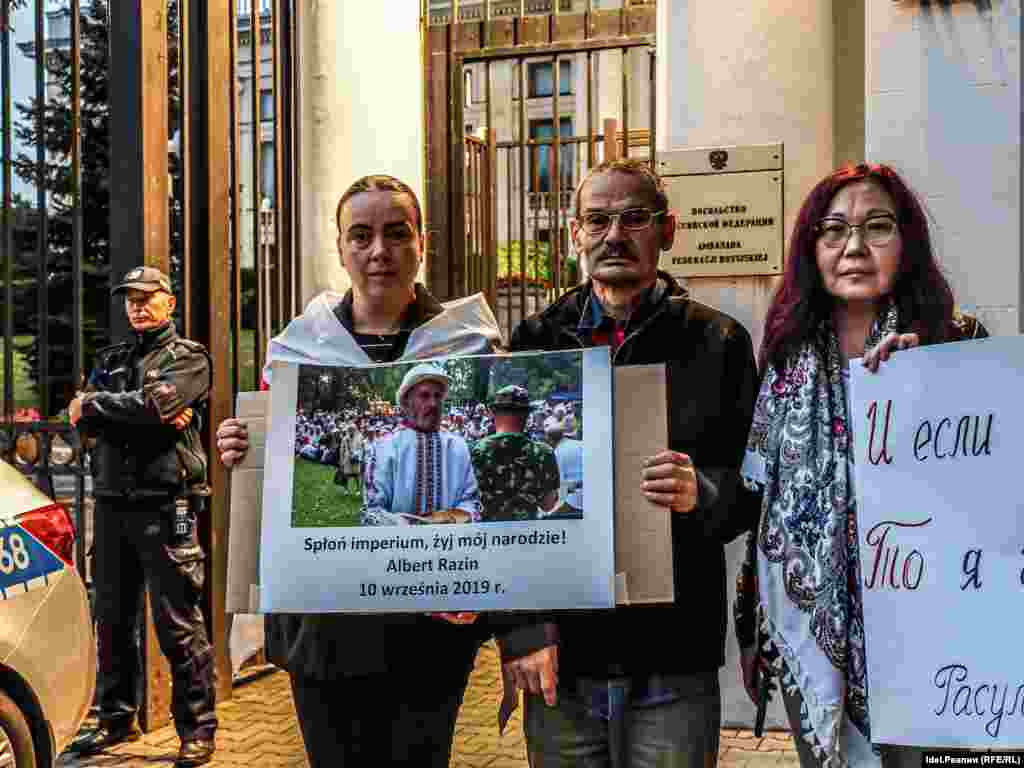 Пикет в память об удмуртском учёном Альберте Разине, который совершил акт самосожжения в знак протеста против национальной политики РФ 10 сентября 2019 года, провели в Варшаве татарские, бурятские и белорусские активисты. Акция прошла у посольства РФ. Таким образом участники заявили несогласие с проводимой путинским режимом политикой по отношению к народам России и соседних стран.