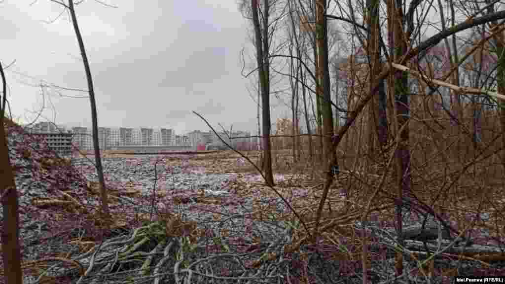 Сейчас речь идёт о строительстве на месте вырубленных 3 га леса нового ЖК. Ни чиновников из мэрии Казани, ни застройщика ГК "Эталон" не смутил тот факт, что именно в этой части рощи росли краснокнижные растения, а воздух здесь оказался наименее загрязненным диоксидом азота. Теперь, понятное дело, вся эта роскошь осталась в прошлом. В ноябре лес вырубали ударными темпами, пни выкорчевывали, а стволы деревьев, по словам очевидцев, сразу же измельчали. Делалось это, очевидно, для того, чтобы истинный размер ущерба невозможно было установить. Фото с места уничтожения рощи сделали, по просьбе корреспондента "Idel.Реалии", местные активисты. Поле, которое читатели могут наблюдать на большинстве снимков, ещё в октябре было густым пойменным лесом, в котором гнездились многочисленные птицы. Желто-красное здание на горизонте — магазин строительных товаров "Мегастрой". Также на нескольких снимках в кадр попадает полоска коричневого забора. Он огороживает участок у проезжей части, на котором застройщик развернул свою деятельность изначально.
