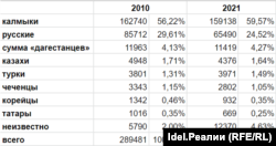 Перепись 2021 года подтвердила относительную стабильность этих сообществ и высокую степень их герметичности внутри республики — миграция из "дагестанских" поселений в Элисту и другие города Калмыкии практически отсутствует, а небольшой спад численности дагестанских народов, вероятно, объясняется не внутрирегиональными процессами, а обратной миграцией в Дагестан и отъездом части молодежи в города-миллионники и места вахтовых работ.