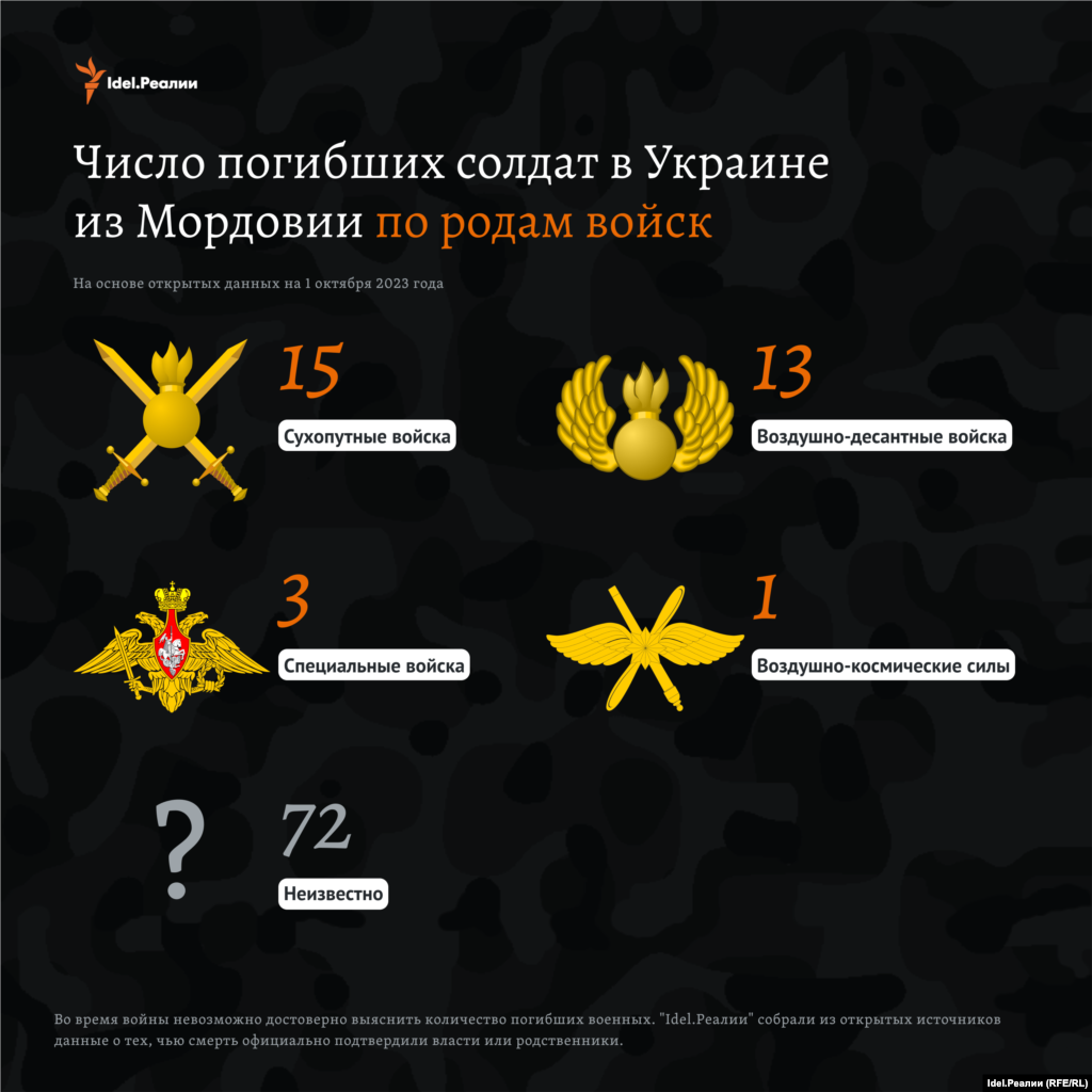 Из общего числа погибших 32 человека числились контрактниками — это те, кто находились в составе действующей армии страны на момент начала войны в Украине (24 февраля 2022 года) или подписали официальный контракт с Министерством обороны России уже после ее начала. Они служили в регулярной армии. Еще 10 человек были наемниками ЧВК "Вагнер"; 17 — мобилизованными; 4 — добровольцами.