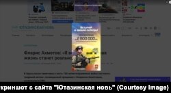 Когда открываешь заметку о похоронах Флариса Ахметова на сайте газеты "Ютазинская новь", первое, что видишь, — это реклама службы по контракту.