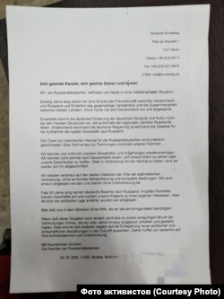 В нём содержалось обращение к канцлеру и Бундестагу с призывом обратить внимание на "катастрофическую ситуацию" российских немцев (фотография письма с подписью есть в распоряжении редакции).